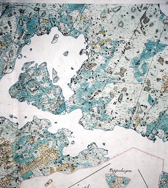 On the maps one can clearly see how the meadows are situated in shallow depressions between moraine hillocks and rock exposures. The islet Krakskäret that can be seen on the map from 1800 had become a part of the mainland by 1867. Also by today also the westernmost sound is dry and is being grazed by cattle.
